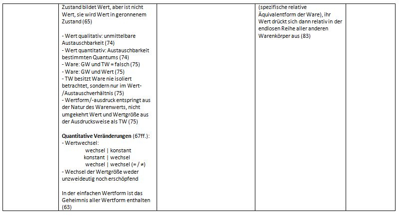 • gemeinsames Drittes = Auf dieses können die Verschiedenen Waren reduziert werden, es ist weder nur die eine noch nur die andere Ware, sondern beiden gemeinsam, wovon die Waren ein Mehr oder Minder darstellen. Das gemeinsame Dritte ist der Wert.