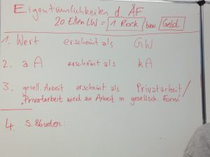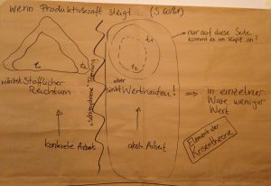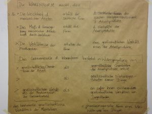 Kleingruppen- und anschließende Plenumsdiskussion zu konkrete und abstrakte Arbeit, Substanz, Wertgröße